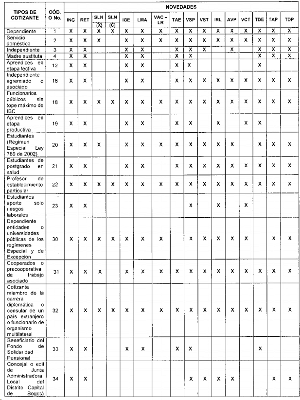8. RELACIÓN TIPO DE COTIZANTE VS. TIPO DE NOVEDAD QUE PUEDE PRESENTAR