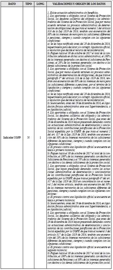 v. Si el "indicador UGPP", reportado por el aportante, tiene valor de "6", se exonerará en el 20% del pago de intereses de mora para los subsistemas diferentes a pensión, siempre y cuando la fecha de pago sea menor o igual a 30 de octubre de 2017.