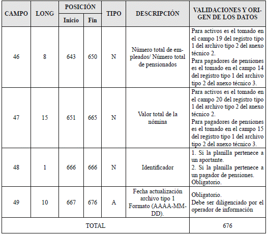 4. Si se omitió el pago de algún subsistema. Deberá realizar la corrección a través del mismo operador de información con el cual se liquidó la planilla inicial, en donde en el registro "A" el operador de información deberá cargar toda la información del Registro Tipo 2 de la planilla inicial y en el registro C reportará los valores que informó en la planilla inicial adicionando el o los sistemas que dejó de aportar en la planilla inicial. El operador de información solo enviará el archivo de salida a la administradora a la que se está ajustando la información de la planilla inicial.
