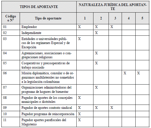 1. RELACIÓN TIPO DE APORTANTE VS. NATURALEZA JURÍDICA DEL APORTANTE