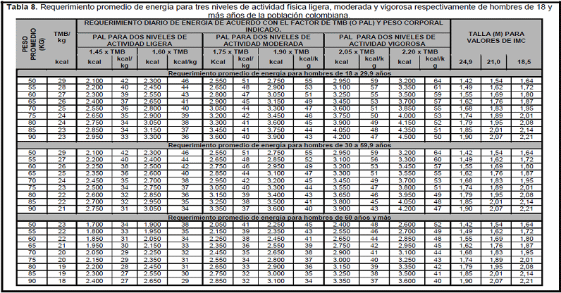 Que en ese contexto, las recomendaciones de ingesta de energía y nutrientes se convierten en la principal herramienta para lograr una dieta balanceada y saludable, ya que establece las cantidades adecuadas para cada grupo de edad, sexo, estado fisiológico y actividad física para la población colombiana.
