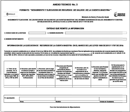 -- Los municipios en forma obligatoria deberán diligenciar integralmente el formato y enviar al departamento el Anexo número 1. Formato “DETERMINACIÓN DE USO DE RECURSOS DE SALDOS DE LA CUENTA MAESTRA”, dentro de los plazos establecidos.