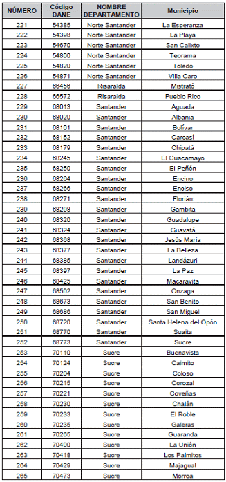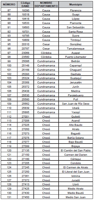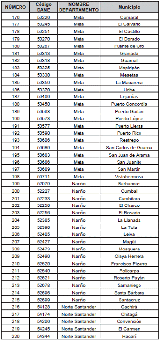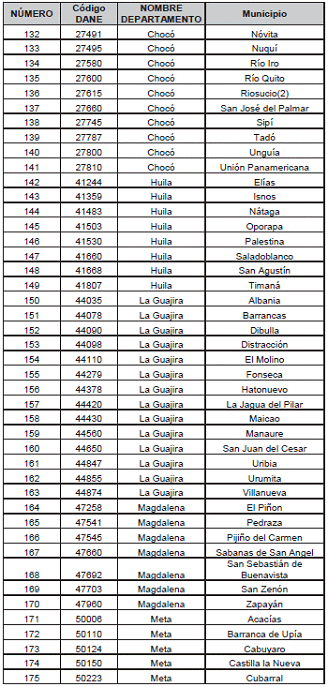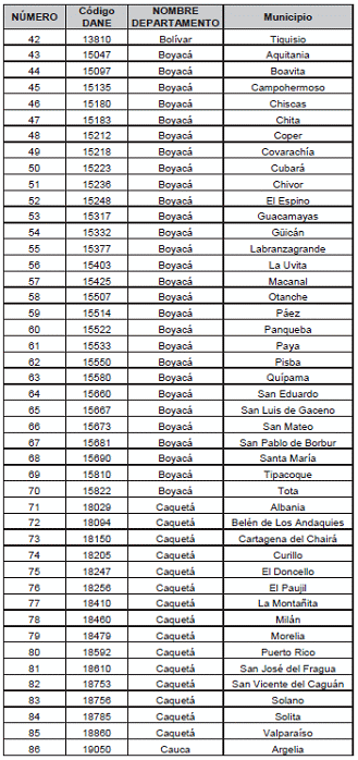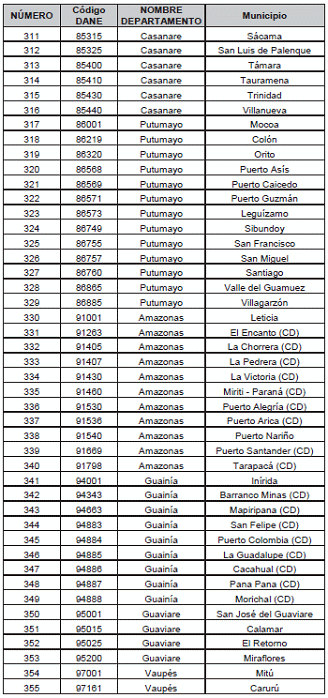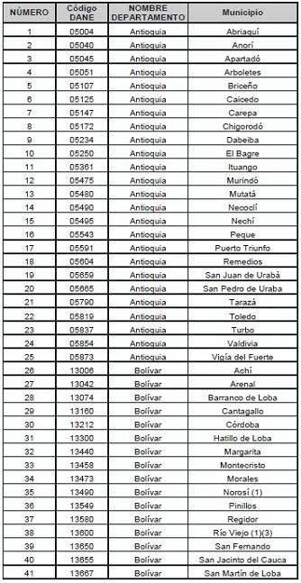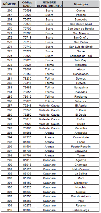 Listado de municipios y corregimientos departamentales. a los que se les reconocerá prima adcional por zona especial de dispersión geográfica.