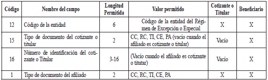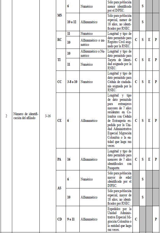 h) Se debe tener especial cuidado con las longitudes del número de identificación de los afiliados según el tipo de documento.