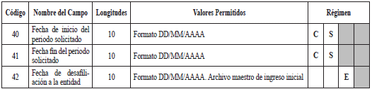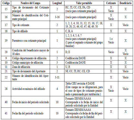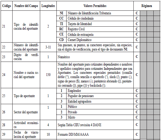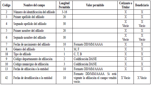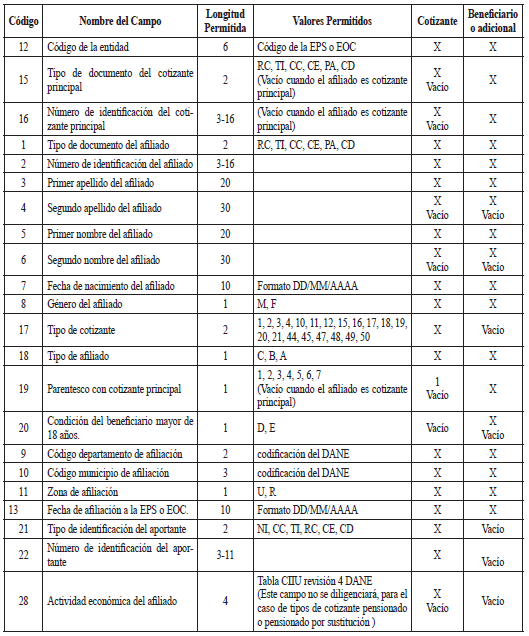 4. Glosario de campos con los valores específicos y permitidos para el reporte de la información de afiliados y/o aportantes.