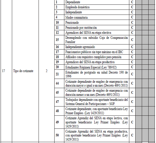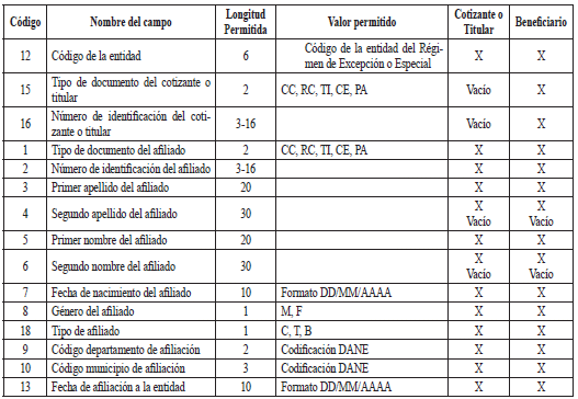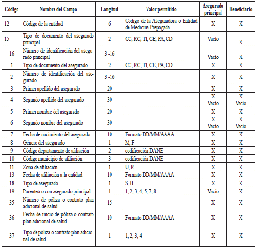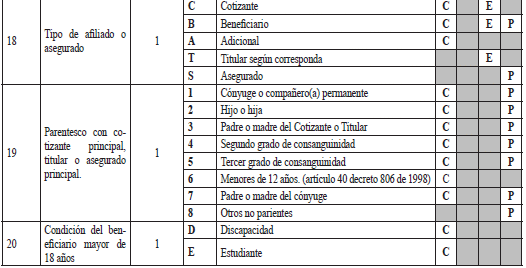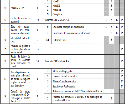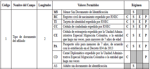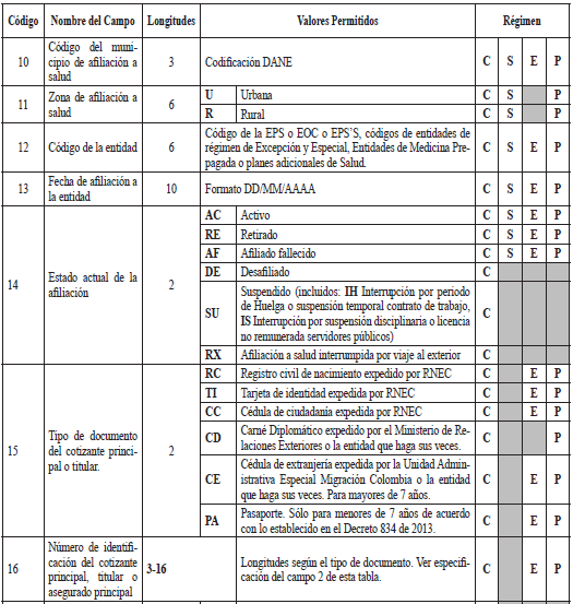 Contributivo, Subsidiado, de Excepción y Especial y para las entidades de Medicina Prepagada, Seguros de Salud y Planes Adicionales de Salud, que deben reportar información de afiliados al SGSSS. Los valores de código y valores permitidos deben consultarse en el numeral “4. Glosario de Campos” de este Anexo Técnico.