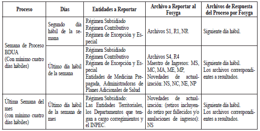 Semana de Proceso BDUA. Corresponde a la semana del mes que tenga como mínimo 4 días hábiles del mes, y se denomina así por cuanto en dicha semana se realizarán los procesos de actualización de la BDUA.