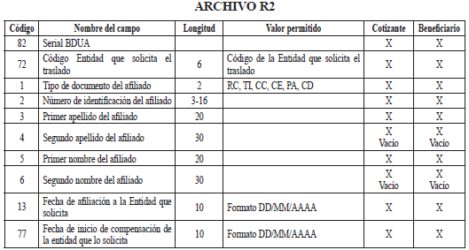 Archivos R2, S2: Son los archivos con los registros de los afiliados que remite el administrador fiduciario de los recursos del Fondo de Solidaridad y Garantía - Fosyga, a la Entidad1 como solicitud del traslado en BDUA.