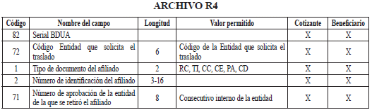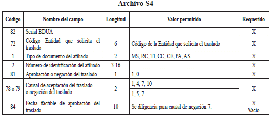Archivos R4, S4: Son los archivos con los registros de respuesta de aceptación o negación a la solicitud de la Entidad2, enviado por la Entidad1 al administrador fiduciario de los recursos del Fondo de Solidaridad y Garantía - Fosyga.