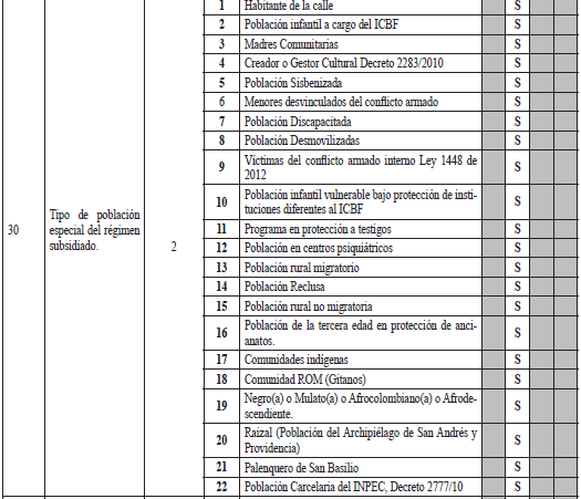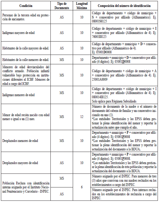 1. Especificaciones para la identificación de los afiliados para la población especial del Régimen Subsidiado.