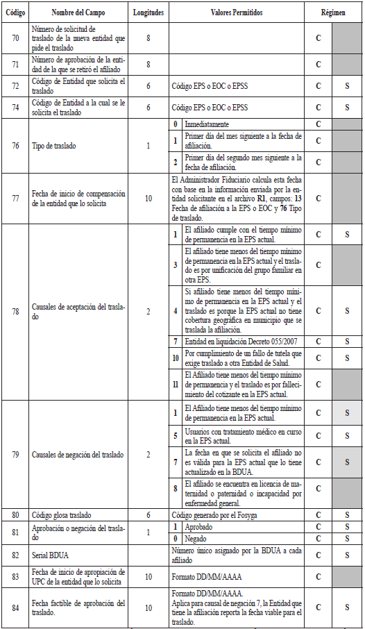 3. Estructura y especificaciones de los archivos para el reporte de la novedad de traslado de EPS o movilidad entre regímenes.