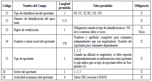 Para los cotizantes independientes que son empleadores de uno o más afiliados deberá registrarse en esta tabla como aportante. En el caso de un cotizante independiente que no es empleador no se debe reportar en este maestro.