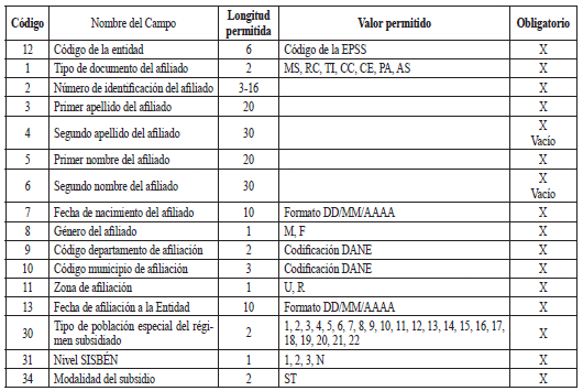 Estructura del Archivo Maestro de Afiliados al Régimen Subsidiado
