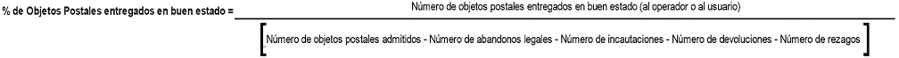 -- Por objeto postal entregado en buen estado se entiende: objeto entregado por el operador en el domicilio del destinatario registrado en la cubierta del envío, en las mismas condiciones en las cuales fue recibido por el operador.