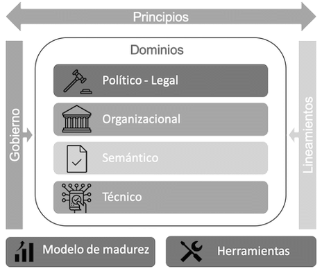 De acuerdo con el artículo 2.2.9.1.2.1 del Decreto 1078 de 2015, Decreto Único Reglamentario del Sector de Tecnologías de la Información y las Comunicaciones (DUR-TIC), “[l]a Política de Gobierno Digital se desarrollará a través de un esquema que articula los elementos que la componen, a saber: gobernanza, innovación pública digital, habilitadores, líneas de acción, e iniciativas dinamizadoras, con el fin de lograr su objetivo (…)”.