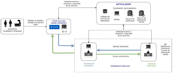Por consiguiente, los sujetos obligados a la política de gobierno digital y los actores privados, para el cumplimiento y prestación de servicios, deben interoperar con las autoridades públicas.