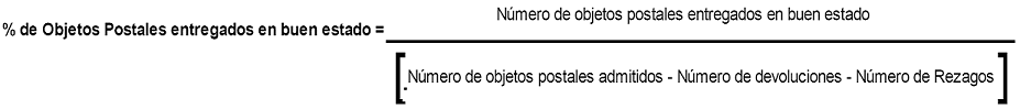 Los objetos postales deberán ser entregados en buen estado en un porcentaje mínimo conforme a la siguiente tabla.