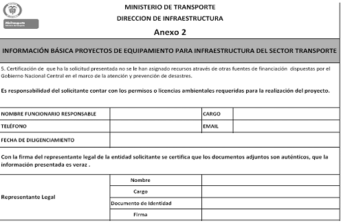 1. Formato de solicitud denominado Información Básica proyectos de equipamiento para infraestructura del sector transporte –Anexo 2–.