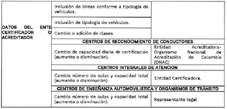 De igual manera, previo al inicio del trámite de modificación del registro, el propietario en caso de ser persona natural, o representante legal en caso de ser persona jurídica, deberá validar que el Organismo Evaluador de la Conformidad (OEC) o el Organismo Nacional de Acreditación de Colombia (ONAC) realizaron el cargue de la certificación o acreditación en el sistema del Registro Único Nacional de Tránsito (RUNT), con las modificaciones pertinentes, conforme a la clase de Organismos de Apoyo al Tránsito que vaya a ser objeto de registro cuando aplique.