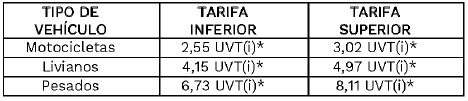 * UVT (i) corresponde a la UVT vigente del año en el que se va a calcular la actualización de la tarifa.