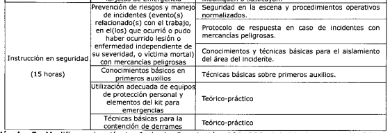 Que el artículo 5o ídem, establece el contenido e intensidad horaria del curso básico obligatorio de capacitación para conductores que transportan mercancías peligrosas.