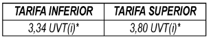* UVT (i) corresponde a la UVT vigente del año en el que se va a calcular la actualización de la tarifa.