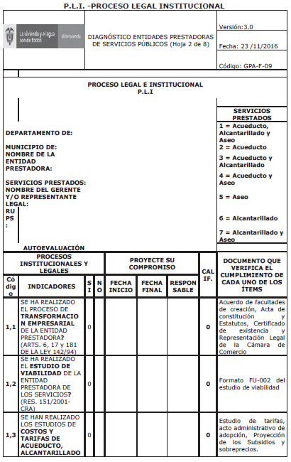 DIAGNOSTICO ENTIDADES PRESTADORES DE SERVICIOS PÚBLICOS