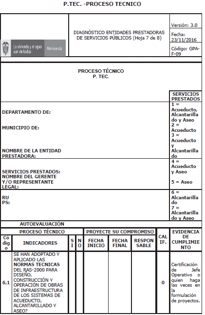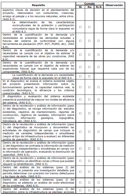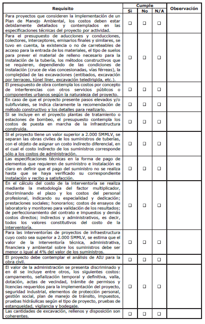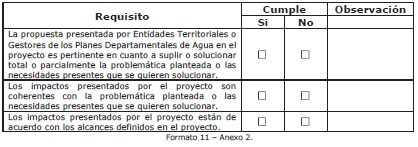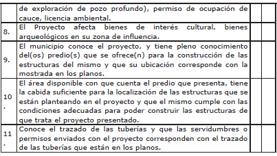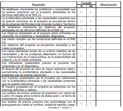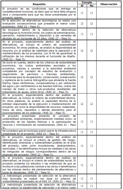 La evaluación presentada en esta guía requiere que los proyectos previamente hayan surtido el proceso de revisión documental, permisos e impacto para la presentación de proyectos de agua potable y saneamiento básico.
