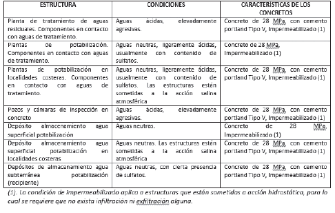 Tabla 1 Características de los concretos para algunas estructuras propias de ingeniería ambiental y sanitaria (NSR-10)