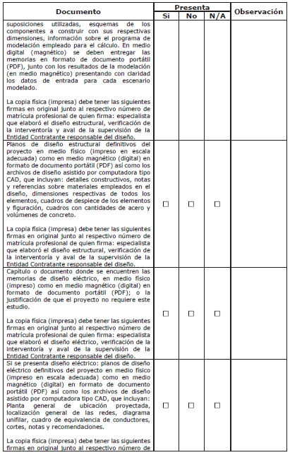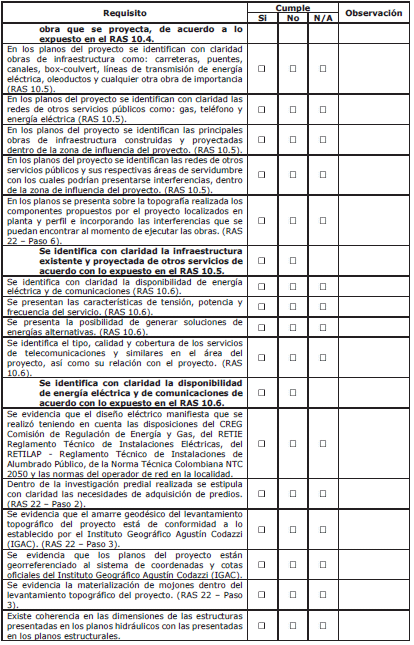Luego de que el profesional encargado del proyecto realice un estudio de la documentación entregada, procederá con su criterio a verificar el cumplimiento de los siguientes requerimientos: