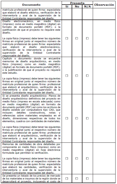 Durante el proceso de registro del contenido de la documentación entregada o luego de este, se deberá verificar que el proyecto se encuentra completo a nivel general en cuanto a los documentos que debería entregar según el tipo de proyecto, siguiendo lo expuesto abajo: