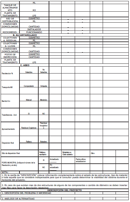 Si se trata de un proyecto de pre inversión o inversión en rehabilitación, reconstrucción, prevención y/o mitigación de riesgos de los sistemas de acueducto, alcantarillado y/o aseo: