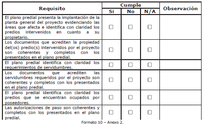 En la revisión documental se verificará la existencia de los documentos prediales mínimos requeridos por proyecto. Sin embargo, se deberá realizar una revisión detallada de la disponibilidad predial.