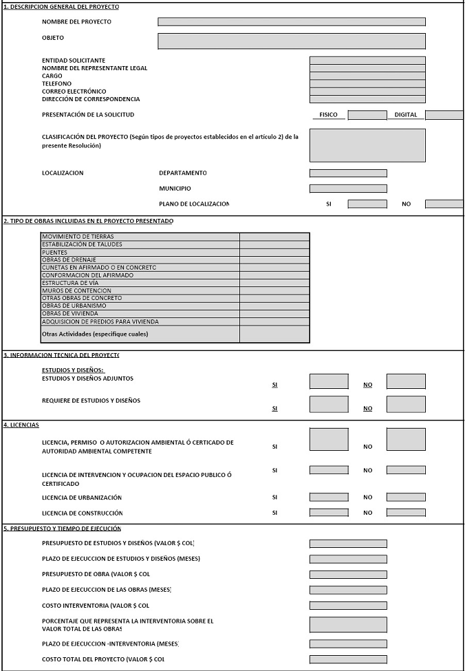 1. Diligenciar el formato de solicitud denominado “Información Básica Proyectos de Desarrollo Urbano, Construcción y Vivienda” – Anexo 1.