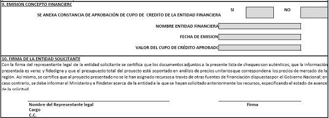 11. Si el proyecto va a ser financiado con varias fuentes, se debe indicar el valor total del mismo, las obras que serán financiadas con cargo a cada una de las fuentes y la(s) entidad(es) ante la(s) cual(es) se ha(n) solicitado tales recursos, especificando el avance o estado de dicha (s) solicitud (es). En este evento, de ser expedida la viabilidad al proyecto, el desembolso de los recursos por parte de Findeter, estará condicionado a la presentación del documento que acredite la disponibilidad de los recursos provenientes de la(s) otra(s) fuente(s), debidamente suscrito por estas y en el que se discriminen los rubros que se financiarán con dichos recursos. No obstante lo anterior, la entidad solicitante será la única responsable ante la entidad financiera, ante Findeter y ante el Ministerio de la correcta ejecución de los recursos solicitados y de la calidad del proyecto.