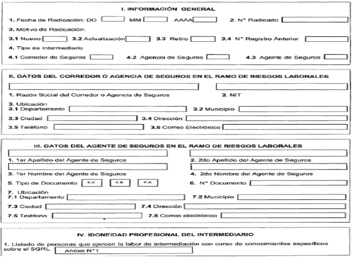 FORMULARIO ÚNICO DE INTERMEDIARIOS DE SEGUROS EN EL RAMO DE RIESGOS LABORALES