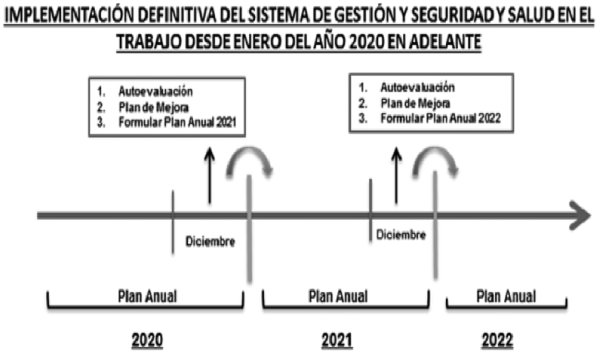 En el año 2020 y en los años sucesivos, el Plan de Mejora debe dejarse listo y aprobado por la empresa en el Plan Anual del Sistema de Gestión de Seguridad y Salud en el Trabajo desde el mes de diciembre del año anterior. Lo anterior con el fin de empezar a ser ejecutado a partir del primero (1o) de enero del año siguiente, así: