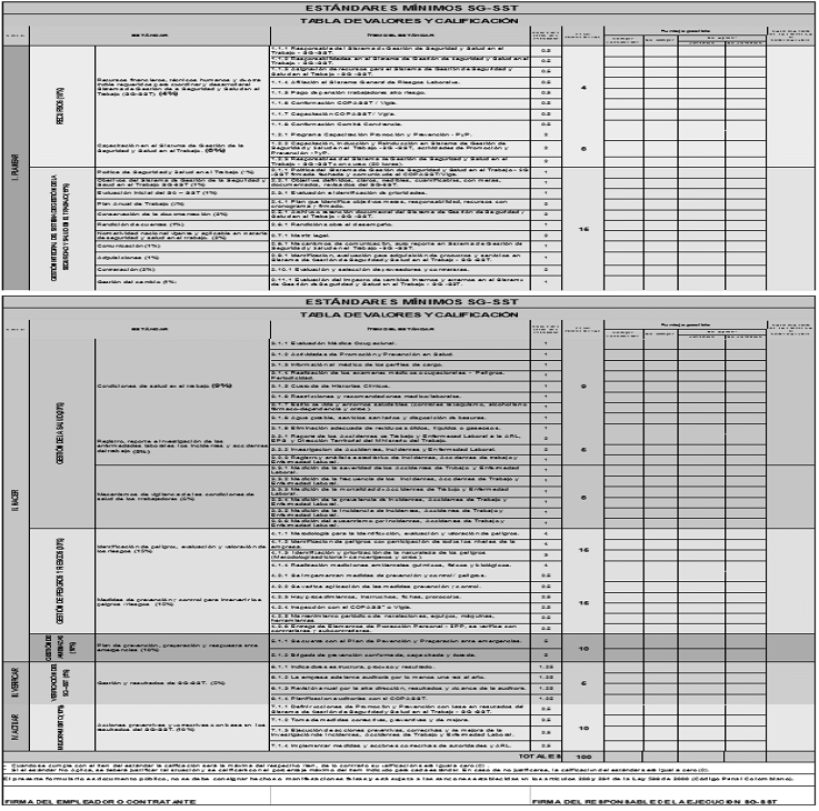 ESTÁNDARES MÍNIMOS DEL SISTEMA DE GESTIÓN DE LA SEGURIDAD Y SALUD PARA EMPLEADORES Y CONTRATANTES.