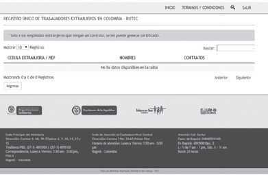 2.1. Para ingresar al sistema de Registro Único de Trabajadores Extranjeros en Colombia (RUTEC), las empresas deben acceder a la página web del Ministerio del Trabajo: http://www.mintrabajo.gov.co/