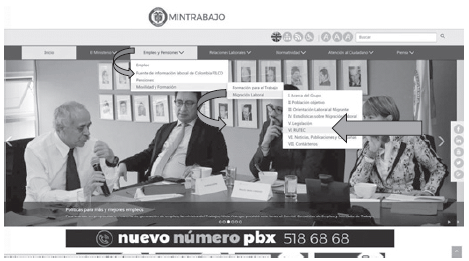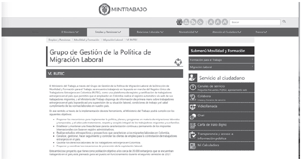 2. Al ingresar a la página destino, se encontrará información referente al Grupo de Gestión de la Política de Migración Laboral y RUTEC entre otros.