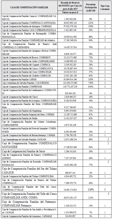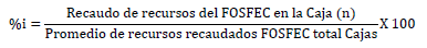 Para efectos de la presente Resolución, las Cajas de Compensación Familiar se clasificarán en tres (3) tipos, de acuerdo con la relación entre los recursos recaudados para el FOSFEC en cada Caja y el promedio de recursos recaudados para la totalidad de las Cajas de Compensación Familiar de dicho Fondo para la vigencia inmediatamente anterior, con la siguiente fórmula: