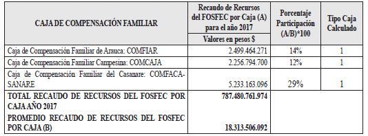 Que mediante oficio número 2-2018-207512 del 13 de septiembre de 2018, la Superintendencia del Subsidio Familiar certificó las fuentes de los recursos del Fondo de Solidaridad de Fomento al Empleo y Protección al Cesante (FOSFEC), correspondientes a la vigencia 2017, los cuales sirvieron como insumo para determinar el tipo de Caja de Compensación Familiar.