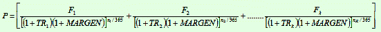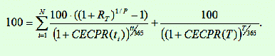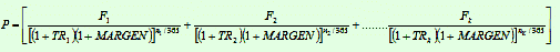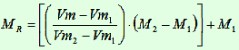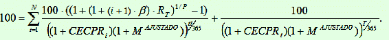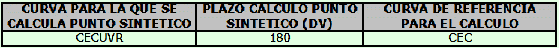 Para la obtención de información en plazos específicos en donde no se cuente con referencias de de mercado en la curva CECUVR, se procederá a obtener información mediante el cálculo de puntos sintéticos. Dichos puntos se obtendrán aplicando la siguiente formula: