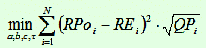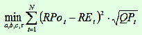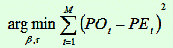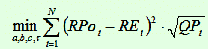 Este método se lleva a cabo minimizando la suma de los errores cuadráticos entre los precios observados y estimados de los precios de la siguiente forma: