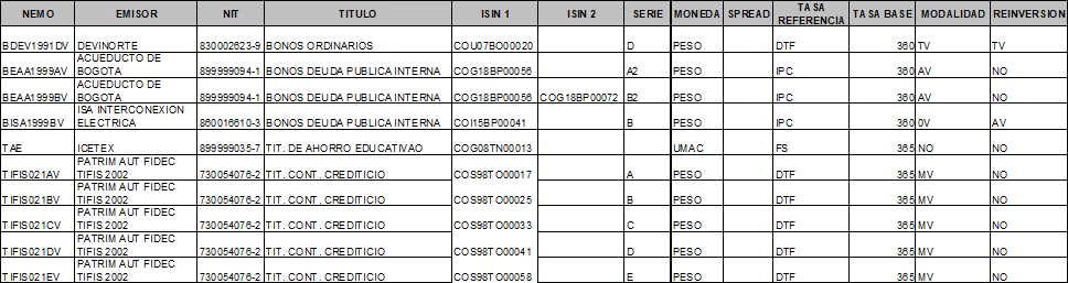 2.12 Otra información: Los índices y la curva estimada de rentabilidad de TES – CETES, que actualmente calcula y difunde la BVC, se continuarán publicando para fines informativos.