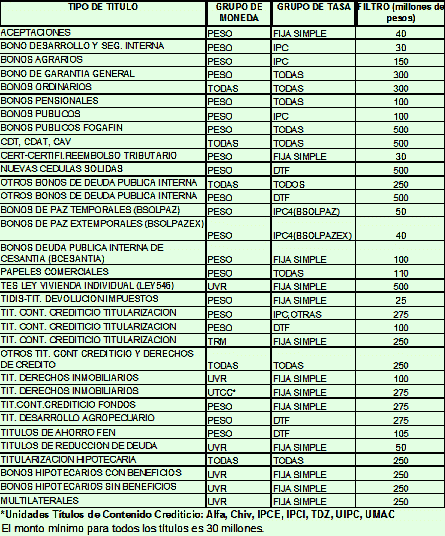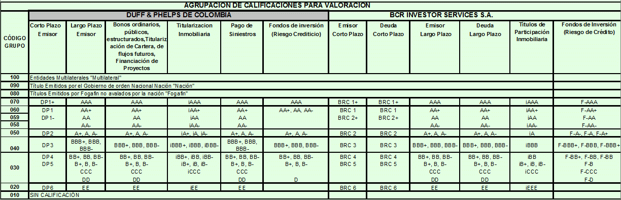 <Fuente: Boletín Ministerio de Hacienda, Capítulo Superintendencia Financiera de Colombia, No. 84 de 21 de enero de 2008>