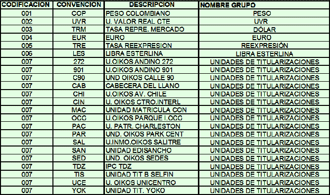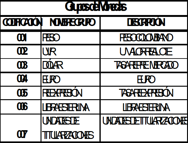 1.21 Moneda o unidad: Es la denominación en la cual se expresa la cantidad nominal del título, esta puede ser: en pesos, dólares, euros, unidad de valor real UVR, entre otras. Sin perjuicio de lo anterior, la clasificación por moneda o unidad podrá corresponder a una agrupación con base en características similares.