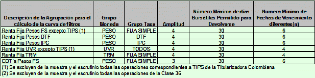 De negociarse seis emisiones diferentes en el día de valoración para TES en pesos y TES en UVR, respectivamente, la curva se calculará con los datos del día. Sin embargo, para dar mayor representatividad a la muestra, esta podrá incluir datos registrados en 180 días corridos calendario anteriores al día de cálculo. Los datos que se incluirán serán sólo los de las emisiones que completen las seis mínimas.
