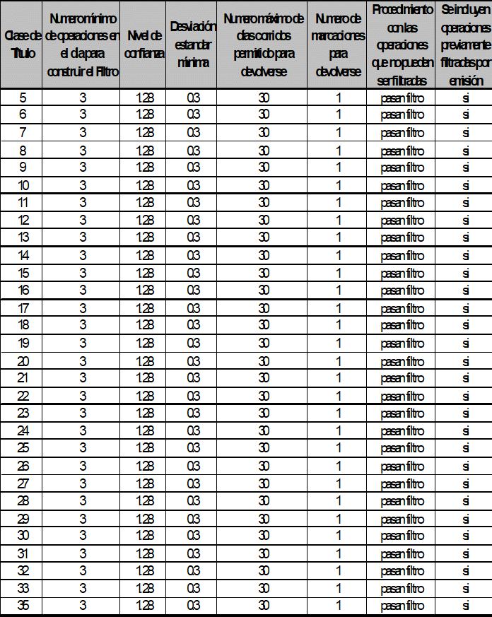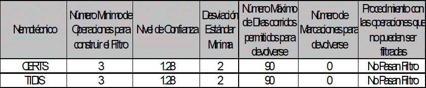 Para la conformación de la muestra de operaciones para los cálculos se tendrán en cuenta las siguientes consideraciones: