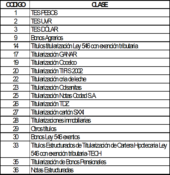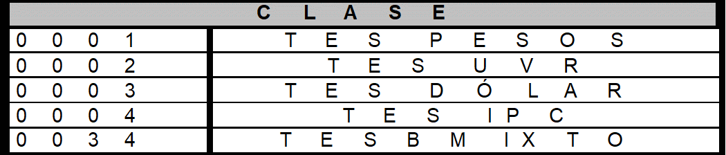 1.20 Clase (CTV): Corresponde a la agrupación básica de los títulos de renta fija efectuada para valorar, que considera el sector del emisor y el tipo de título.